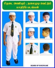 பள்ளியின் அடையாளம், ஒழுங்கு மற்றும் ஒருங்கிணைப்பை மேம்படுத்தும் முக்கிய அங்கம் சீருடை. சீருடை பயன்படுத்தும் போது பின்வரும் விதிகளை பின்பற்ற வேண்டும்.