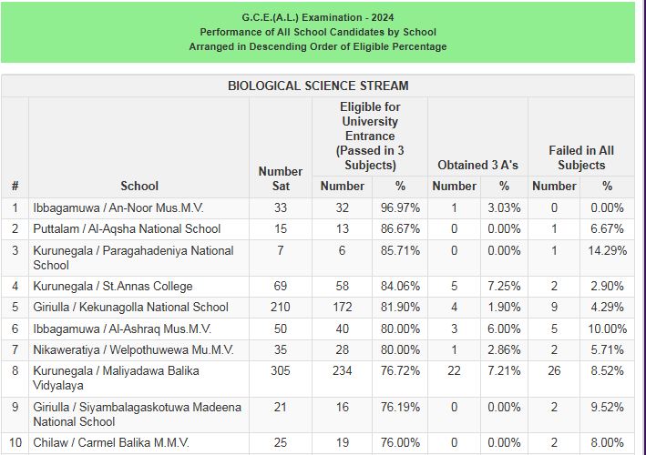 2024 ஆம் ஆண்டு நடைபெற்ற க.பொ.த. உயர்தர பரிட்சையில் வடமேல் மாகாணத்தின் அனைத்து மொழி மூலங்களிலும் உயிரியல் விஞ்ஞான பிரிவில் முதலிடத்தை எமது பாடசாலை பெற்றுக் கொண்டுள்ளது என்பதனை மகிழ்ச்சியுடன் அறிய தருகின்றோம்.